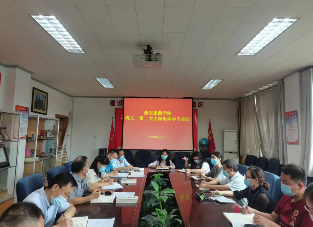 为加强机关党支部建设成效,提高机关广大党员的政治觉悟,切实用习近平新时代中国特色社会主义思想武装头脑、指导实践、促进学校教育事业高质量发展。2022年9月14日上午10时,西安思源学院机关一第一党支部在行政楼306会议室召开学习会议,党委书记朱君强、纪委书记李永玲以普通党员身份参加了支部学习,会议由支部书记王海涛主持。