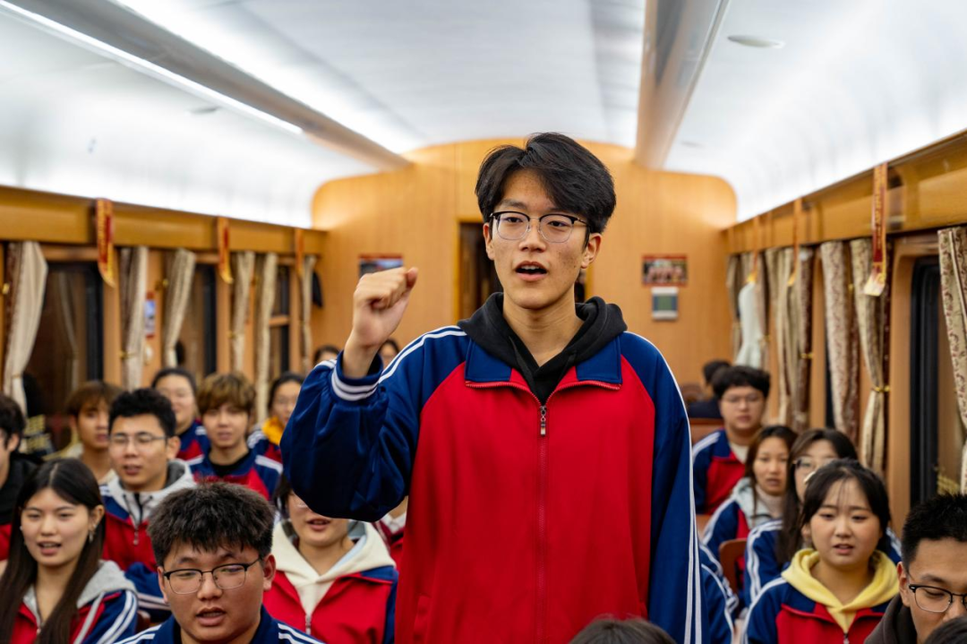 返程列车上,师生们热烈交流研学感悟。电子信息工程学院25级数字媒体艺术(本)01班底冠勋说:“延安的每一寸土地都浸润着信仰的力量。老一辈革命家在艰苦中坚守、在奋斗中开拓的精神,让我明白‘幸福是奋斗出来的’不是一句空话。作为数字媒体艺术专业学生,我要将延安精神转化为学习动力,在科技创新中勇担使命。”