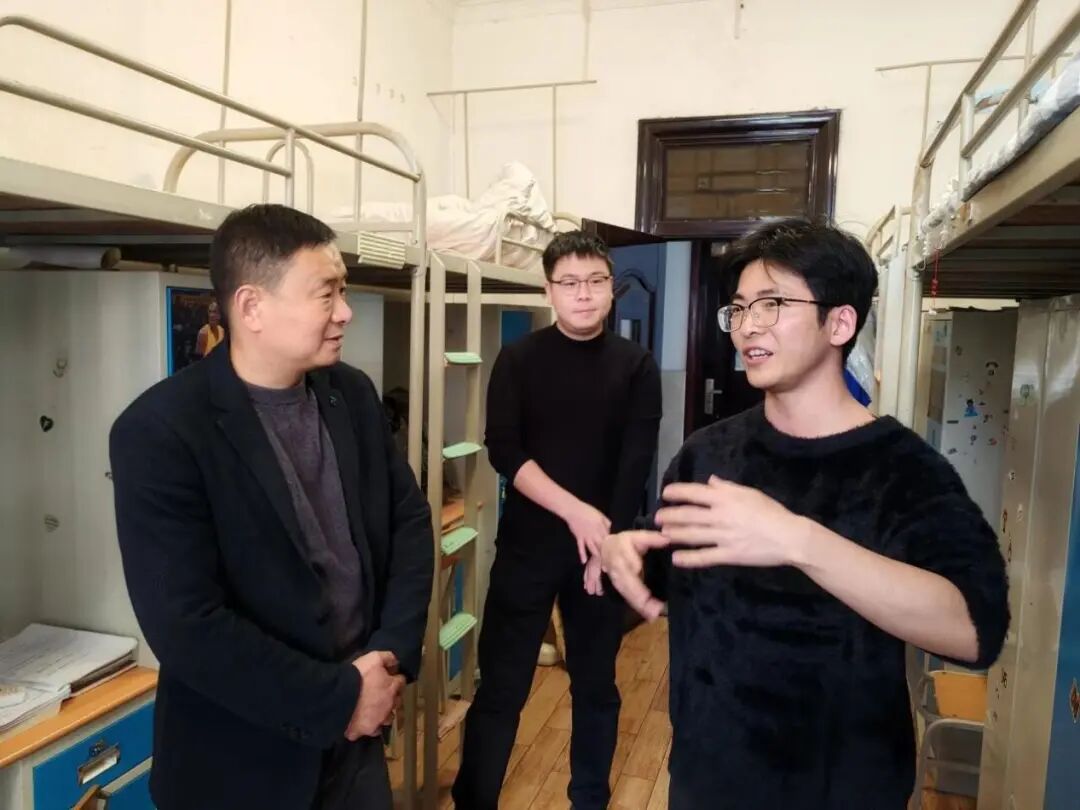 鲍彬书记在毕业班宿舍开展检查工作时,重点与备战考研、考公的学生进行交流,详细了解他们的复习进度、知识薄弱点突破情况、心理压力状态及备考中遇到的实际问题。针对学生反馈的问题,他鼓励大家保持积极稳定的心态,合理规划复习时间,优化学习方法,以自信从容的状态迎接考试。