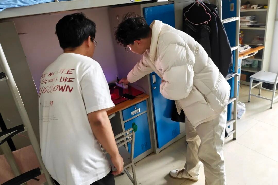 排查过程中,逐一查看各宿舍插线板规范使用情况,严查违规使用大功率电器、私拉乱接电线、超负荷用电等高危行为,仔细检查宿舍门窗、床铺、消防设施等基础配套设施完好度,全面清查易燃易爆物品、管制刀具等各类违禁物品,同时耐心引导学生整理内务、清理卫生死角,养成整洁有序、文明健康的生活习惯,切实守住宿舍安全第一道防线。