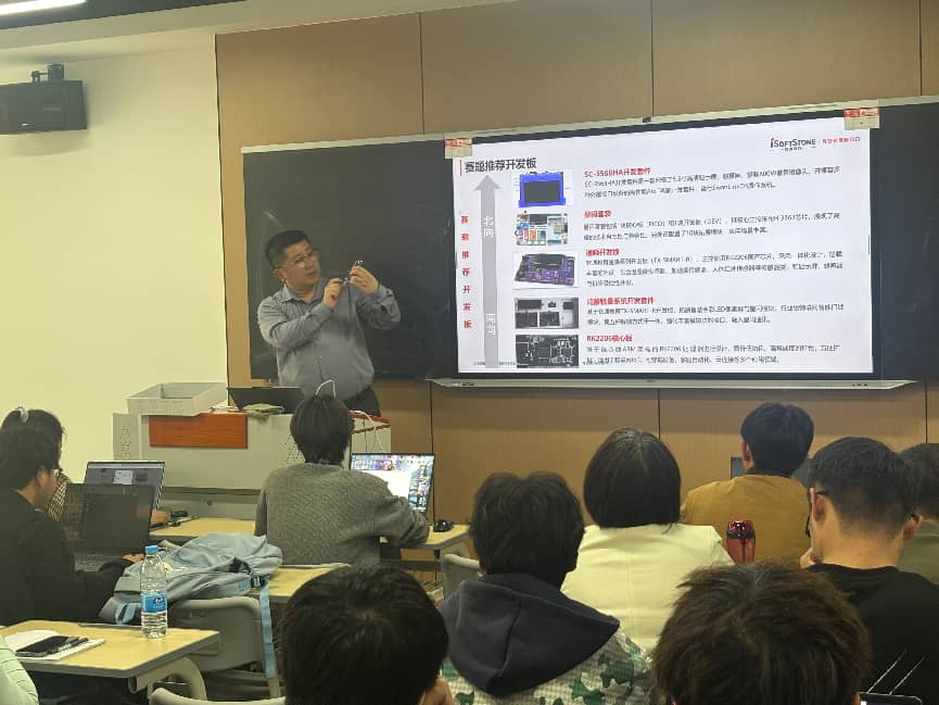 培训过程中,师生积极互动,课堂氛围活跃。学生围绕嵌入式芯片开发、操作系统应用以及软硬件结合等问题进行提问,讲师结合实际案例逐一解答,并提出技术优化建议,助力师生深入理解嵌入式系统开发流程与关键技术。