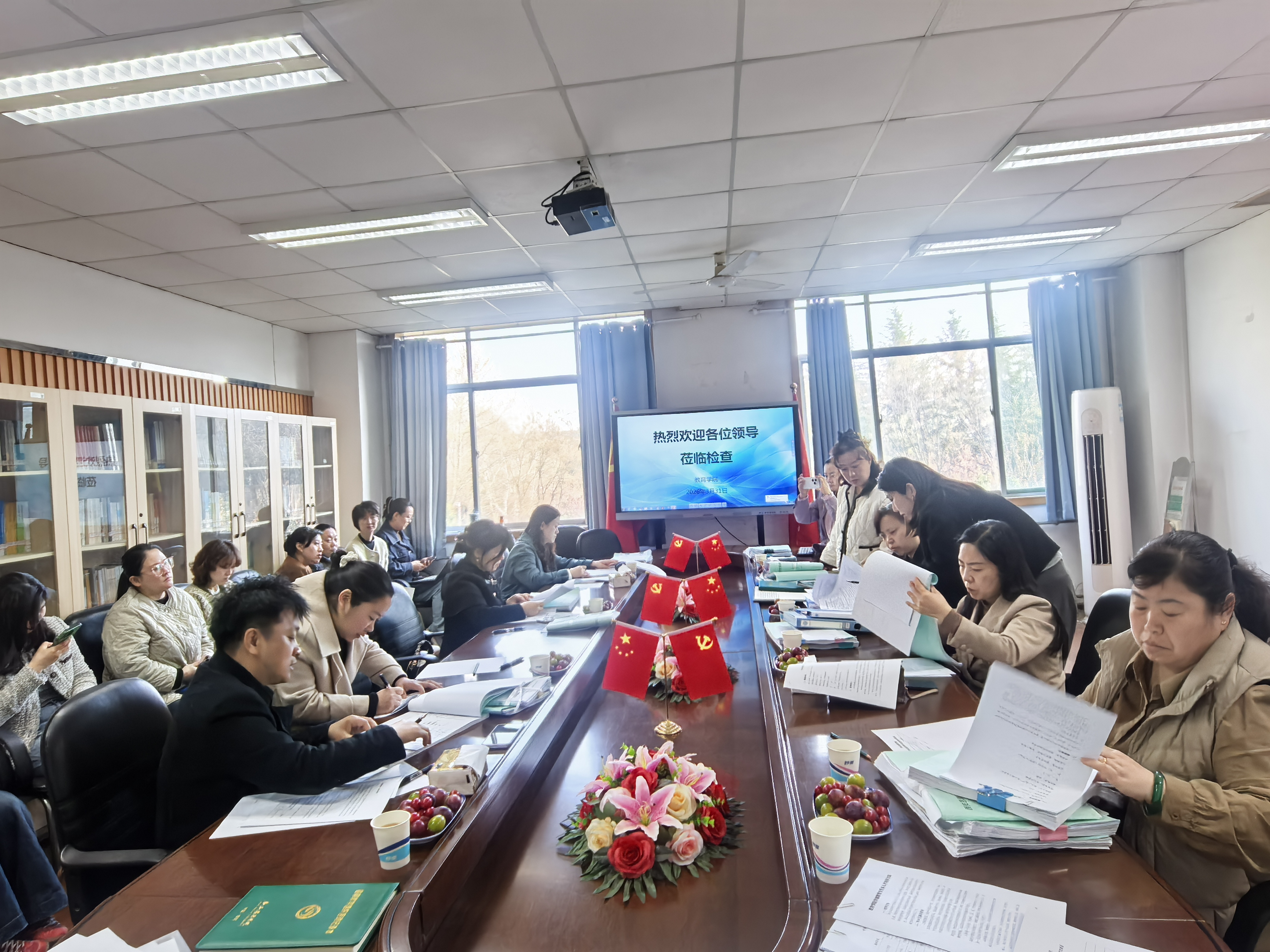 接到督查通知后,学院教务办第一时间向全体教师传达工作要求,并组织被抽查课程教师召开专题准备会。教学副院长陈婷婷强调,课程目标达成评价和试卷质量是审核评估的重要观测点,各系务必以高度的责任感完成自查自纠。3月30日上午12时前完成试卷自查,严格按照蓝色封皮背面顺序规范装订,确保成绩单、达成度分析表与试卷内容一一对应;各系安排专人复核;下午4时前将所有试卷及相关材料、各系“质量标准”教学法学习记录统一放置226会议室。31日上午7:50,被抽查教师及系主任在会议室集合迎检。