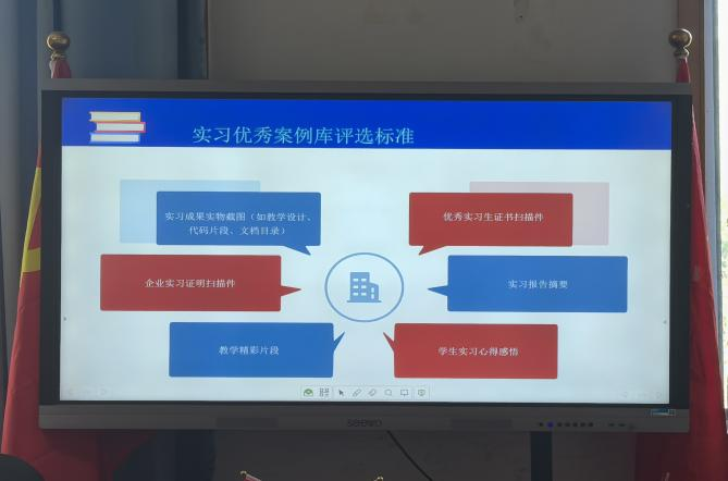 会上,全体教师研讨确定实习优秀案例库评选标准,明确申报需提交实习成果实物截图、企业实习证明扫描件、教学精彩片段、优秀实习生证书扫描件、实习报告摘要及学生实习心得感悟等材料。