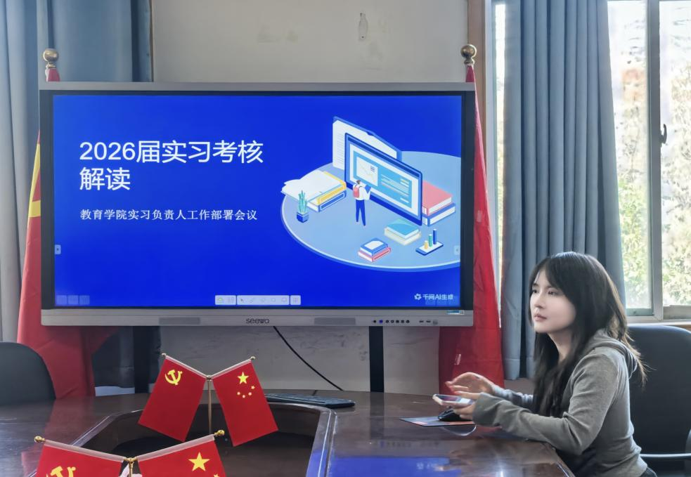 2026年4月1日中午12点30分,教育学院2026届实习考核工作部署会议在1号实验楼226会议室召开。教学副院长陈婷婷出席,综合实习专项负责老师、各带班指导教师参会,会议聚焦实习优秀案例库评选与实习考核工作部署,为考核工作规范开展筑牢基础。