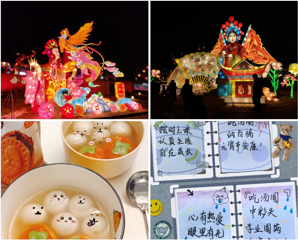 此次打卡活动以“定格美好,滋养心灵”为核心,深度结合元宵团圆、灯火、圆满的传统意象,让学生在轻松愉悦的氛围中梳理情绪、感受温暖。活动期间,同学们热情响应、积极参与,用镜头捕捉身边的元宵暖意与美好瞬间:有人定格流光溢彩的花灯,有人记录与家人团聚的温馨时刻,有人拍摄一碗热气腾腾的汤圆传递节日甜意,还有人手写元宵祝福与新学期心愿,诉说心中的期许与感动。每一张照片都承载着真挚的情感,满是对节日的喜爱、对生活的热爱,以及对新学期的美好憧憬。