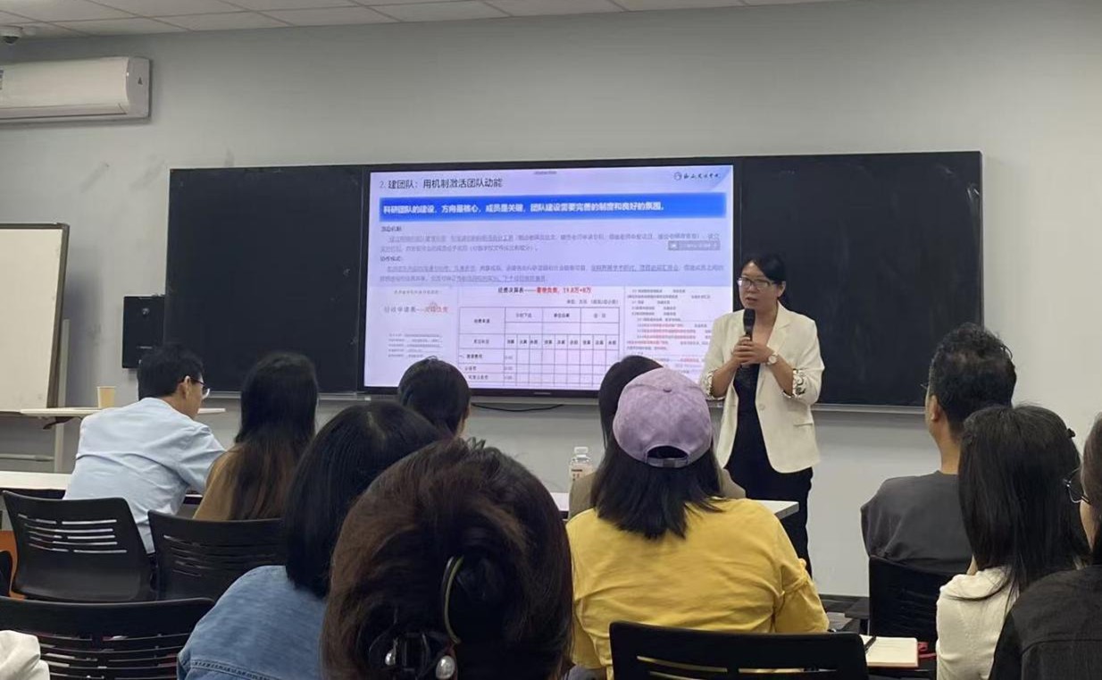 为深入贯彻落实国家关于推动学科交叉融合与科研创新的战略要求,响应学校“强本申硕”,促进科研高质量发展的号召,9月17日下午,基础教育学院在1号实验楼313教室成功举办了本学年第一期科研学术沙龙,主题为“破资源之困,创科研之新”。本次活动特邀城市建设学院周玲教授作为主讲嘉宾,旨在通过跨院系、跨学科的学术交流,为基础教育领域教师提供科研思路拓展与方法论支持。本次科研学术沙龙活动由科研副院长石艾鑫主持,学院全体教师参加。