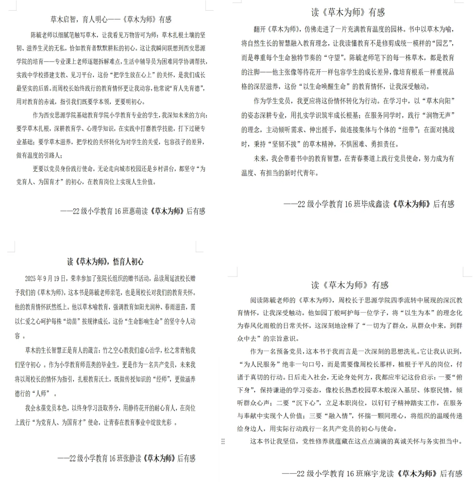 2026届小学专业的学生手持书籍,难掩激动。大家纷纷表示,“首先感谢学校针对毕业班学生的赠书活动,其次两位院长的叮嘱让我心里特别踏实,既知道要带着书里的智慧去奋斗,也清楚该如何保护好自己。接过这本书,就像带着西安思源学院校园的‘念想’出发。书中提到的校园草木,就像周延波校长发自内心地对学生的关怀和教育,他以真诚的爱让我们融入思源大家庭。就像《草木为师》这本书中内容一样,勉励未来的我们扎根教育事业,要像草木生长的力量,带着学校的嘱托与书中的智慧,在实习岗位上脚踏实地,以青春之力书写职场首篇答卷。”