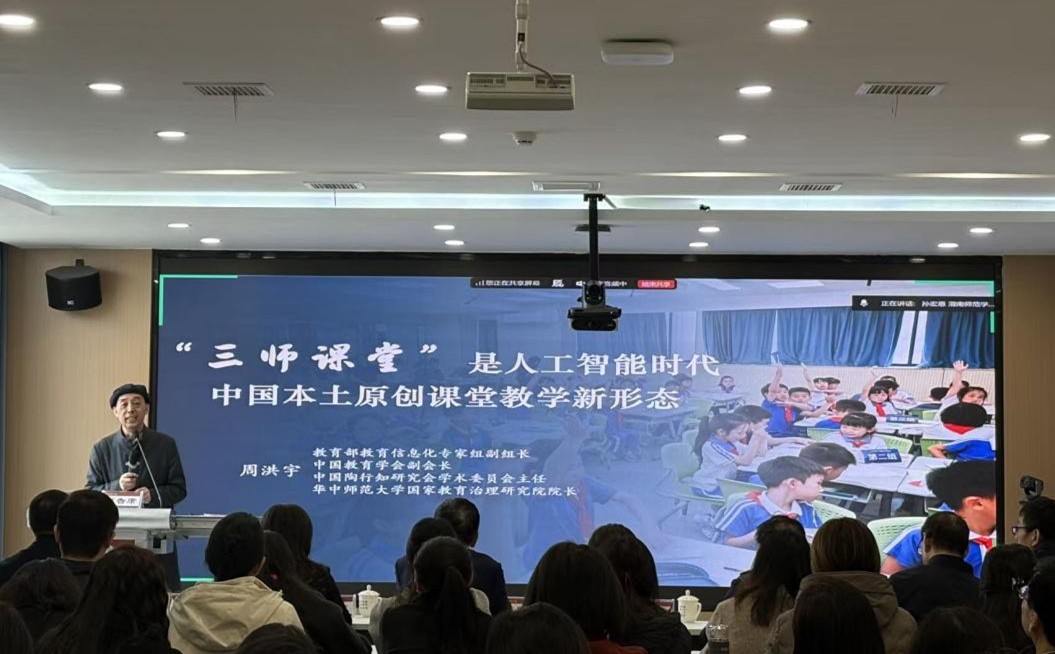 华中师范大学周洪宇教授(中国陶行知研究会学术委员会主任)的分享同样精彩纷呈。周教授将陶行知先生的教育思想与人工智能时代的教育发展相结合,深入探讨了传统教育智慧在新时代课堂教学中的创新应用。他通过具体的教学案例,展示了如何将陶行知 “生活即教育”“教学做合一” 等思想与人工智能技术融合,创新课堂教学方式,提升教学效果。其分享既传承了经典教育理念,又融入了时代创新元素,让参会老师受益匪浅,对今后开展课堂教学创新具有重要的启发作用。