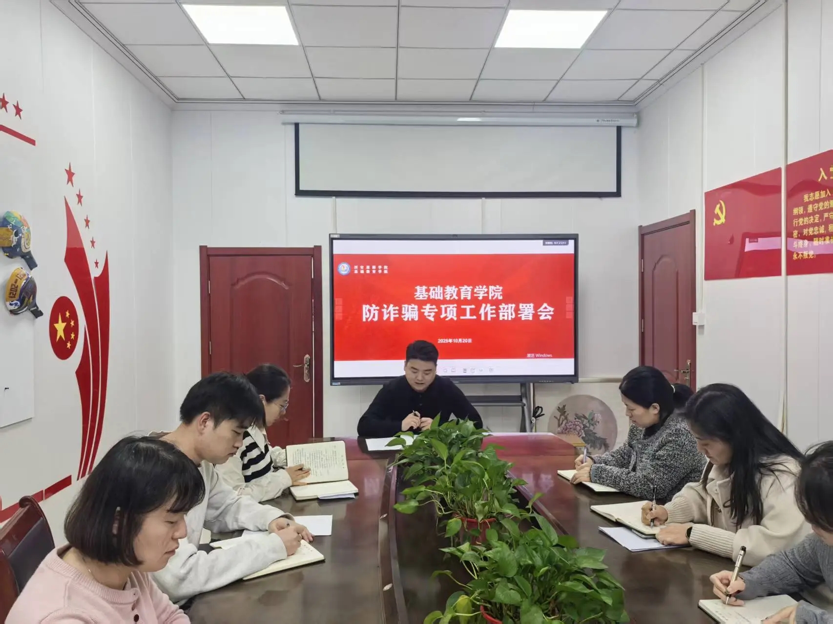 基础教育学院党委副书记、学管副院长李贵军深刻意识到当前诈骗形势的严峻性与复杂性,深知防诈骗工作的重要性和紧迫性。为确保防诈骗工作能够取得切实有效的成果,基础教育学院党委副书记、学管副院长李贵军专门组织并主持召开防诈骗工作部署会议。会上,基础教育学院党委副书记、学管副院长李贵军着重强调,防诈骗工作不仅关系到每一位学生的切身利益,更是学院整体安全稳定工作的关键组成部分。他要求全体辅导员必须提高思想认识,明确自身责任,将防诈骗教育内容系统地纳入到日常教学和学生的管理工作中去,努力营造一个全员参与、齐抓共管的良好工作氛围。此外,基础教育学院党委副书记、学管副院长李贵军还指出,要不断创新和改进宣传教育的方式方法,紧密结合实际发生的诈骗案例,采用通俗易懂的语言和形式,向广大学生普及防诈骗的相关知识,切实提升学生的防范意识和应对各种诈骗手段的能力。通过这些措施,力求构建一个安全、和谐的校园环境,保障学生的合法权益不受侵害。