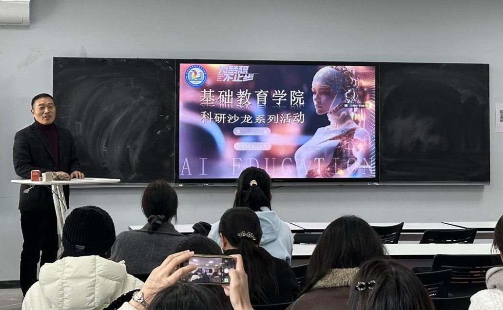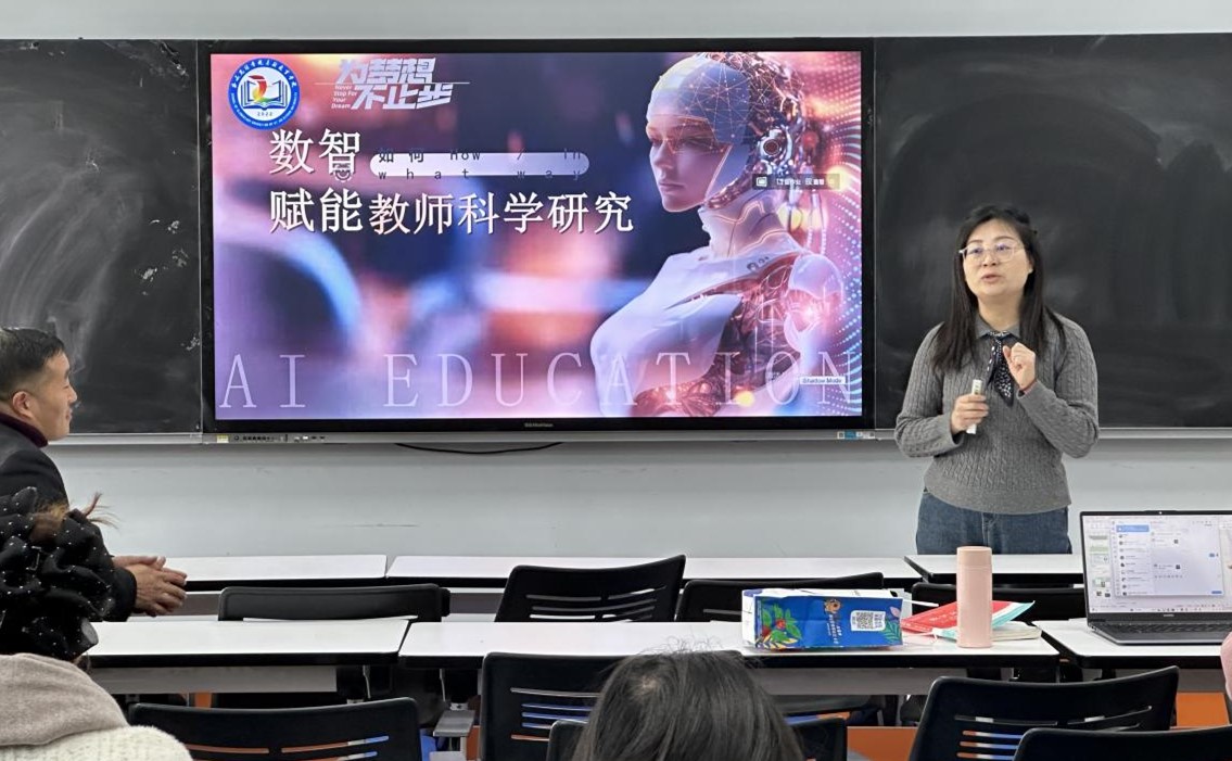 为探索智能技术前沿,赋能教师科研创新,基础教育学院人工智能教育教研室于12月3日下午,在1号实验楼313教室成功举办了本学年第二期科研沙龙讲座。本次沙龙以“数智如何赋能教师科学研究”为核心主题,由人工智能教育教研室主任王明理主持,学院全体教师积极参与,共同探讨教育科研的数字化、智能化转型路径。