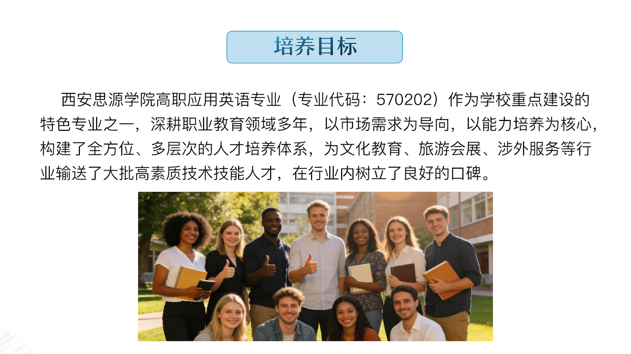 以人为本,服务社会,致力于培养高素质、高技能、有特色、有理想,能感知生活百态的应用型文化传媒人才。