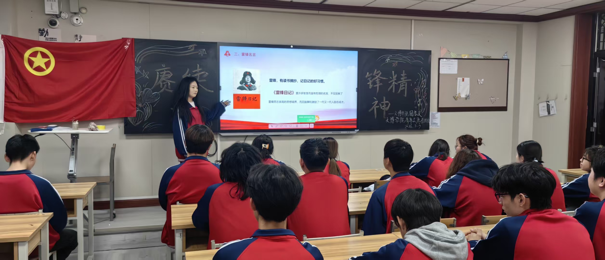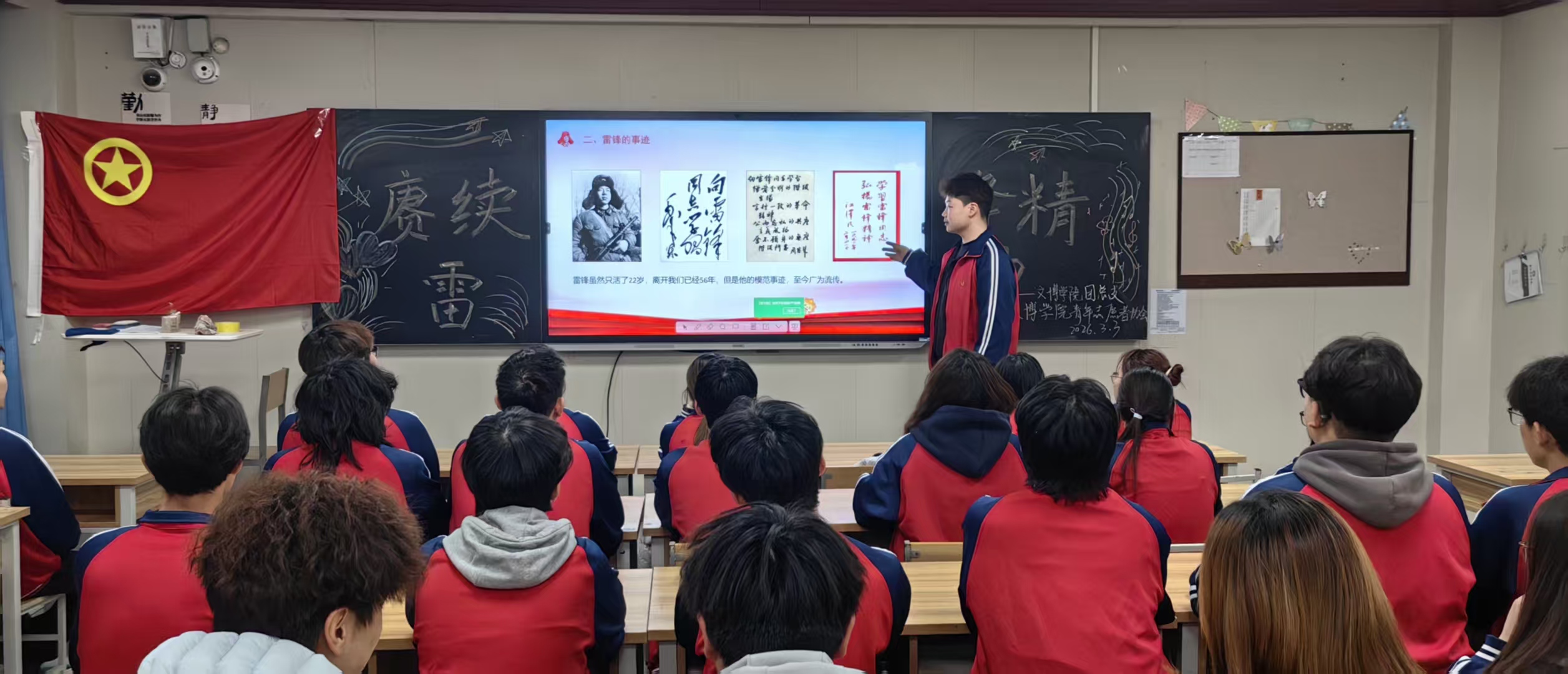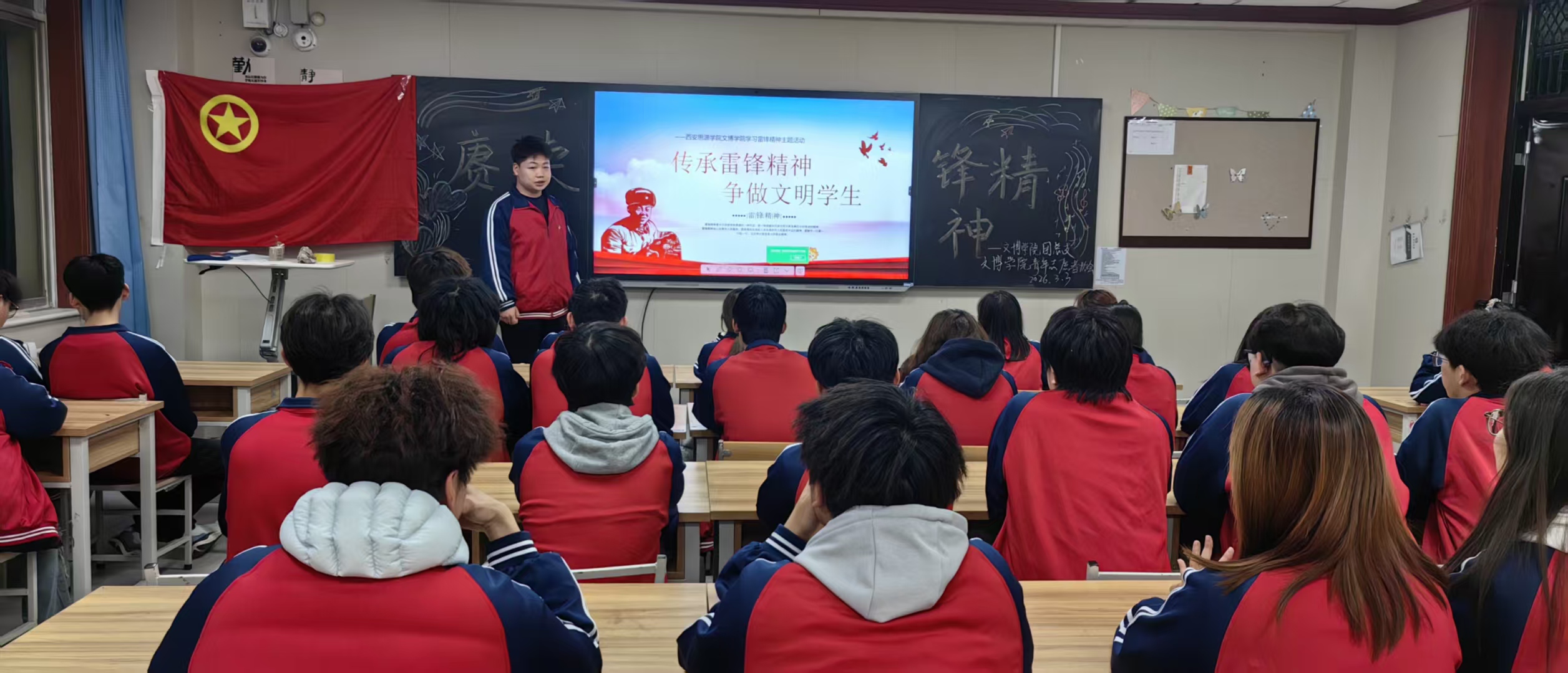 为深入学习贯彻习近平总书记关于学雷锋活动的重要指示精神,传承红色基因,弘扬“奉献、友爱、互助、进步”的志愿精神,2026年3月3日,西安思源学院文博学院团总支联合学院青年志愿者协会,在东教学楼402教室开展“赓续雷锋精神”主题教育活动,组织青年学子通过观看雷锋电影、讲述雷锋故事、分享感悟心得等形式,让雷锋精神在新时代青年心中落地生根、薪火相传。