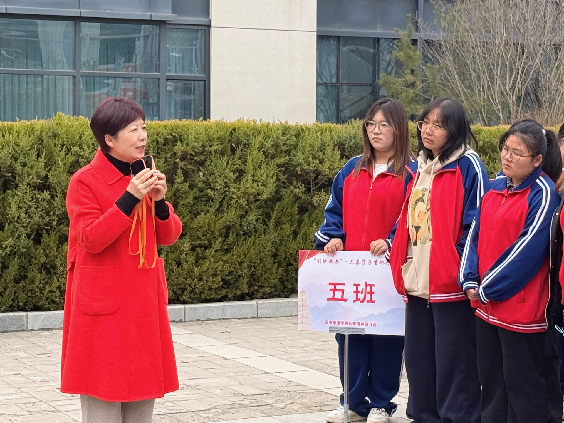 文博学院党总支书记、院长刁炜卿在活动现场表示:“此次活动是深化‘思政 + 专业’育人融合、推动实践育人走深走实的重要举措,更是一堂扎根红色沃土、厚植家国情怀的必修课。延安的一砖一瓦、一件一文物,都是滋养青年成长成才的鲜活教材,承载着不朽的红色记忆与精神力量。希望同学们将延安精神内化于心、外化于行,转化为专业学习的内生动力与行动自觉:文物修复与保护专业学子要潜心钻研专业技艺,用专业力量让革命文物‘开口说话’,守护红色根脉;书法书画专业学子要以笔为媒、以墨传情,用画笔描绘时代精神、书写红色担当;广告设计专业学子要创新视觉表达语言,用创意焕新红色叙事,让红色文化更具吸引力;播音主持专业学子要以声传情、以情润心,用专业的表达演绎红色经典,让延安精神通过声音直抵人心,让红色故事听得见、记得牢、传得开,以青春之声赓续红色血脉。” 他鼓励全体同学以知促行、以行践知,立足专业所长,深耕文化传承,努力讲好中国红色故事、传播好中国文化,让学习成果在文化传承与创新中生根发芽、开花结果。