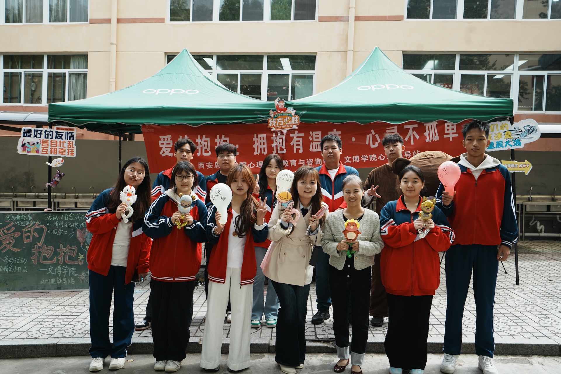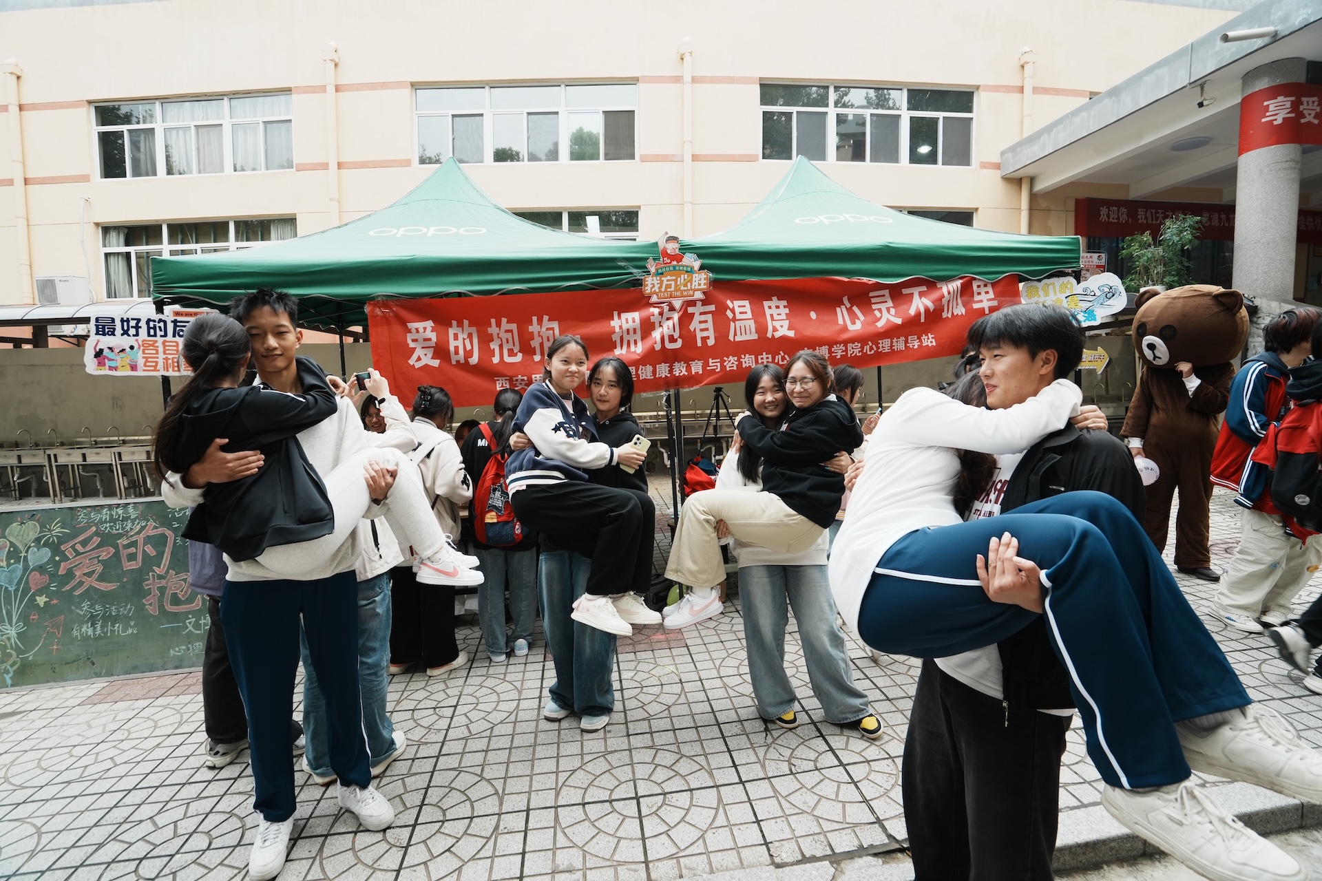 10月10日是世界精神卫生日,今年活动主题为“人人享有心理健康服务” 。旨在通过多种方式的宣传活动,进一步提高全社会对心理健康和精神卫生工作的重视程度,促进对常见心理问题和精神疾病的理性认知,减轻社会歧视和防止“污名化”。为了响应这一主题,提高我校学生的心理健康意识,促进校园心理健康氛围的营造,传递校园温情,10月16日,文博学院心理辅导站组织开展“双十”世界精神卫生日宣传活动,主题为 :“爱的抱抱:拥抱有温度·心灵不孤单”,用温暖互动为学生心理健康注入正能量。