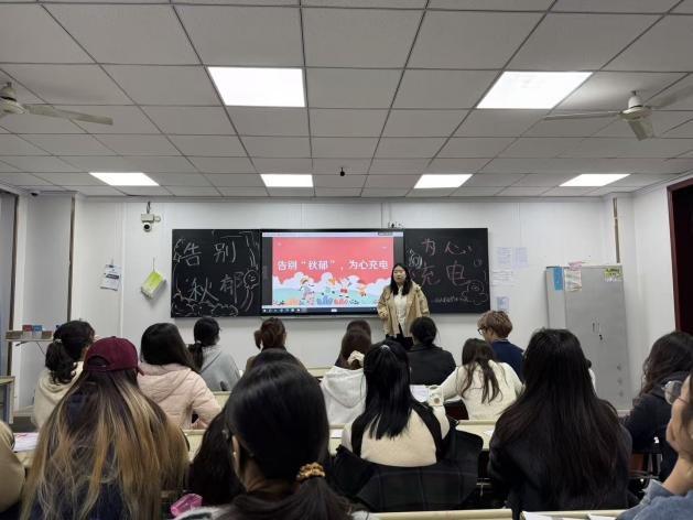 各班辅导员以“季节性情绪调节”为核心展开讲解,一方面系统普及“秋郁”的生理与心理成因、常见表现等基础心理知识,帮助学生科学认知季节性情绪变化;另一方面针对学期中期实验报告撰写、课程考核备考等学业压力,精准分享“情绪日记记录”“5分钟呼吸放松法”等实用调节技巧,让学生掌握可操作的情绪管理工具。