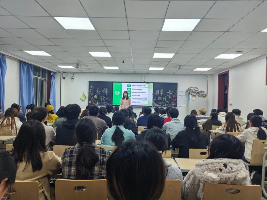为夯实基层心理健康工作基础,强化学生朋辈互助队伍的专业素养,医学院心理辅导站于2025年10月22日在中心楼501教室举办“友伴我心”朋辈培训,本次培训由时会老师主讲,面向25级宿舍长与会心小组长。