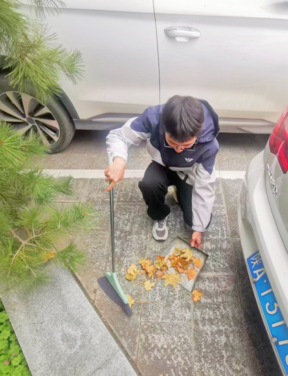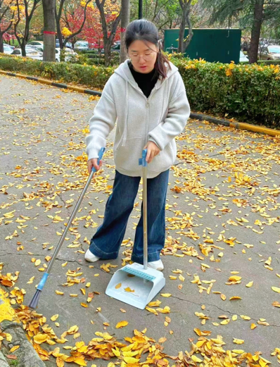 活动中,学子们以高度的责任感投入清洁行动,学生党员与班委组成“先锋队”,重点攻坚绿化带深处、楼梯转角等卫生死角,用行动诠释“服务为民”的宗旨;同学们或俯身捡拾草坪中的白色垃圾,或清理步道缝隙里的烟头,确保校园每一处角落都洁净如新。经过两小时的集中清扫,打扫区域环境焕然一新:洁净的石板路与飘落的枫叶相映成趣,窗明几净的教学楼与秋阳下的实验楼交相辉映,整体面貌实现质的提升。
