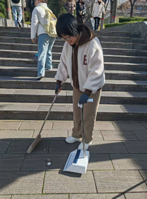 活动现场,同学们分工有序,干劲十足。从擦拭公共设施到清理卫生死角,每一次弯腰拾掇,不仅美化的是校园环境,净化的更是青年心灵。一位正在捡烟头的同学分享道:“完成这20小时的劳动,对我们而言不是负担,而是一种光荣的履行。它让我体会到学校和社会对我们的关爱,也让我们有机会用双手实实在在地回报这片培育我们的土地。这比任何说教都更能让我理解责任与感恩的分量。”