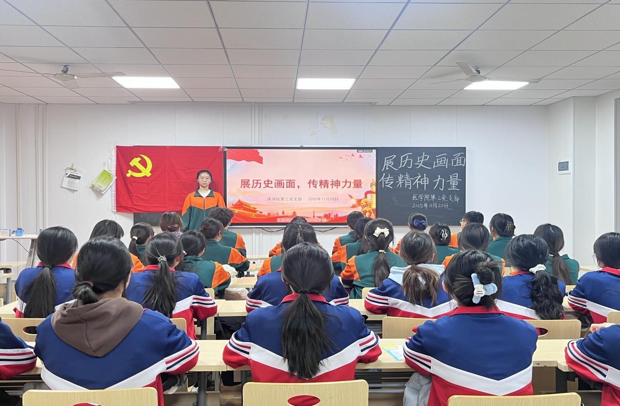 为深化党史学习教育,传承红色基因、凝聚奋进力量,推动党史学习由“被动接受”转变为“主动探究”,深刻领会党史中蕴含的精神力量,在感悟中坚定信仰信念,医学院第三党支部于2025年11月20日在中心楼725教室组织开展“展历史画面,传精神力量”主题活动。