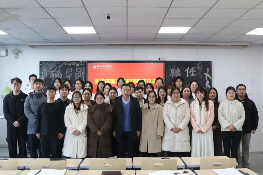 为进一步加强学生思想政治教育工作,充分发挥优秀学生的朋辈引领作用,医学院于2025年11月24日在中心楼512教室举行2025-2026学年辅导员助理聘任仪式。医学院党总支书记、学管副院长马晓斌、全体辅导员、新任辅导员助理及25级新生代表参加了本次仪式。