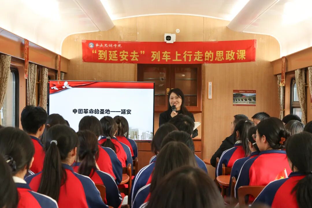 2025年11月22日清晨,医学院的学子们踏上列车,前往红色圣地——延安。研学专列化身“行走的思政课堂”,让红色教育在旅途伊始便浸润心灵。“‘到延安去’曾是一代人的青春向往,如今更应成为新时代青年的精神自觉。”车厢内,马克思主义学院教师郭嘉雯以“到延安去”为主题,通过珍贵的历史影像、生动的讲述,再现了抗战时期无数进步青年冲破封锁、奔赴延安的热血历程。《黄河大合唱》的激昂旋律、《南泥湾》的质朴情怀、《没有共产党就没有新中国》的坚定信念,穿越时空回荡在车厢之中,同学们用嘹亮的歌声表达对革命先辈的崇敬,让红色基因在歌声中代代相传。列车一路北上,窗外的风景从城市繁华渐变为黄土高原的苍茫,车内的思政课堂与红色合唱交织,让每一位医学生在奔赴圣地的途中,提前接受了一场深刻的精神洗礼。
