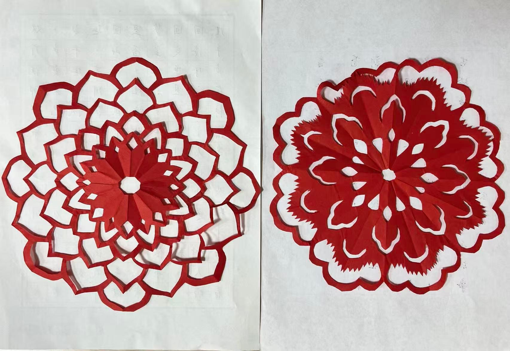 随后,各小组带着作品依次登台,把创作理念与背后的红色故事铺展开来。书写《延安颂》等诗词的书法小组,以笔墨为媒,串联起凤凰山革命旧址、延安革命纪念馆中的历史片段,阐述了革命先辈在延安扎根奋斗的信念力量;展示剪纸作品的小组,以浓烈的正红色为主调,用层叠的花瓣状纹样复刻枣园灯光的暖、宝塔山轮廓的柔,剪刀裁出的弧线里藏着杨家岭会议的历史余温,对称的几何纹理又暗合“自力更生”的精神内核;主题书签则把“红色足迹”“延安初心”具象化,有的以五角星锚定精神坐标,有的用文字印刻“全心全意为人民服务”的宗旨,流苏轻晃间,让红色理念成了可随身的温度。整场分享在交流感悟、互学互鉴中推进,让延安精神在沉浸式体验中入脑入心,切实实现了“做中学、学中悟”的活动目标。