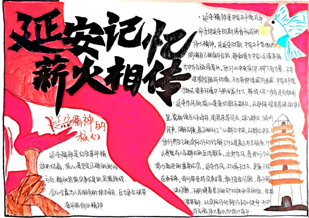 在思想政治教育与专业人才培养深度融合的当下,活动紧扣时代脉搏,倡导同学们以艺术之名传红色之魂。全院学子踊跃响应,以笔为刃、以墨为锋,用多元艺术形式诠释延安精神的时代内涵。有同学以国画勾勒延安宝塔山的巍峨雄姿,定格革命圣地的精神坐标;有同学以硬笔书法抄写革命先辈家书,字里行间传递矢志不渝的信仰力量;还有同学通过手抄报再现南泥湾大生产运动的奋斗场景,结合医学元素绘就“救死扶伤与艰苦奋斗”的精神共鸣。作品中既有对历史场景的生动还原,也有对“坚定信念、自力更生”精神内核的深刻解读,更有医学生将延安精神与“敬佑生命、大爱无疆”职业追求的创意结合。
