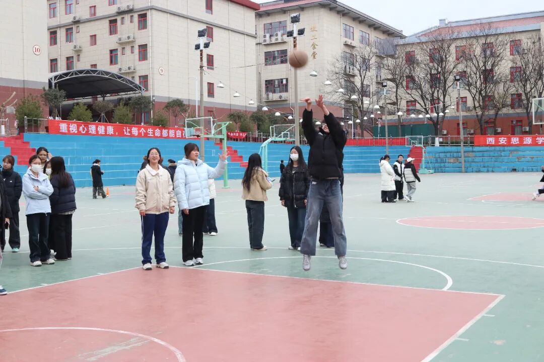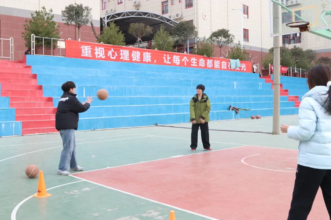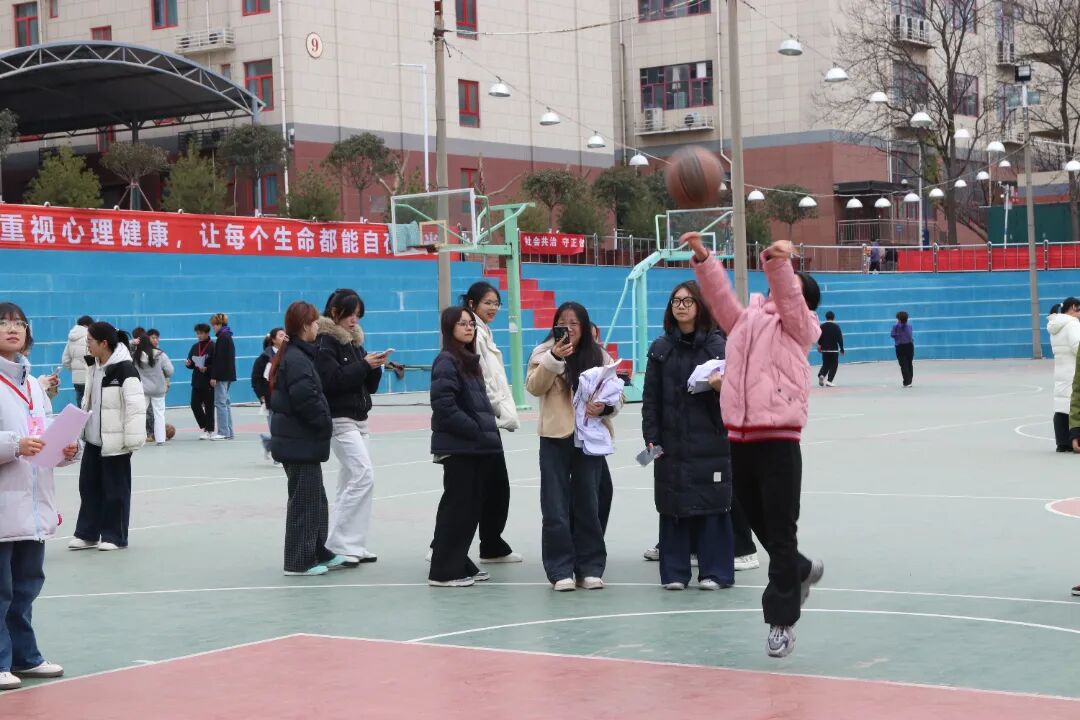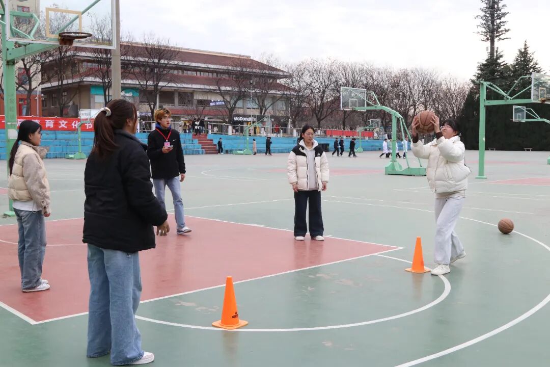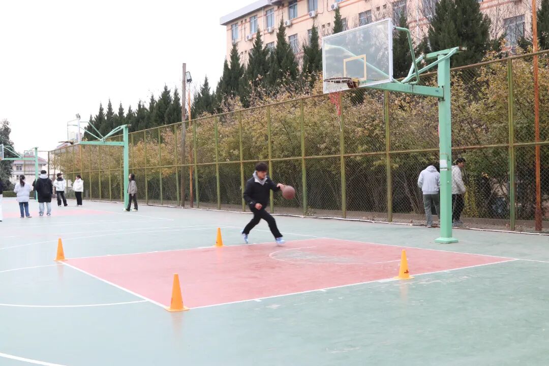 本次活动设置了三大挑战关卡:6人小组参与的运球绕桩接力,考验团队配合与控球稳定性,选手需绕桩穿行且不得失误,否则需从头开始;单人或5人组队的定点投篮挑战赛,每人10球计分排名,团队得分前三可获纪念礼品;4人小组的传球精准度测试,则要求队员在5米间距内完成多种传球动作并精准传入指定区域。各项目既降低了传统篮球的竞技门槛,又突出了“趣味+协作”的特点,让不同篮球基础的学生都能参与其中。