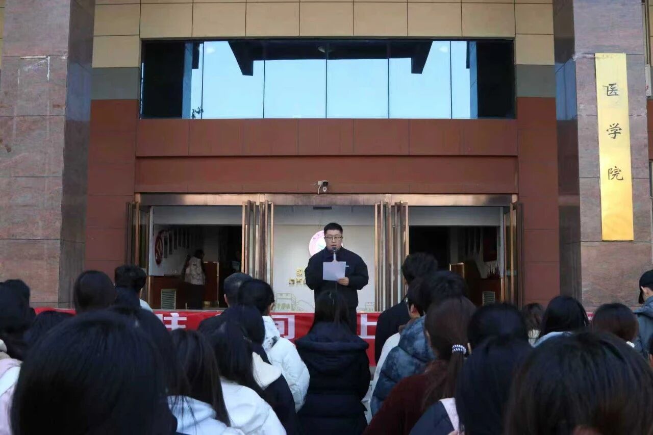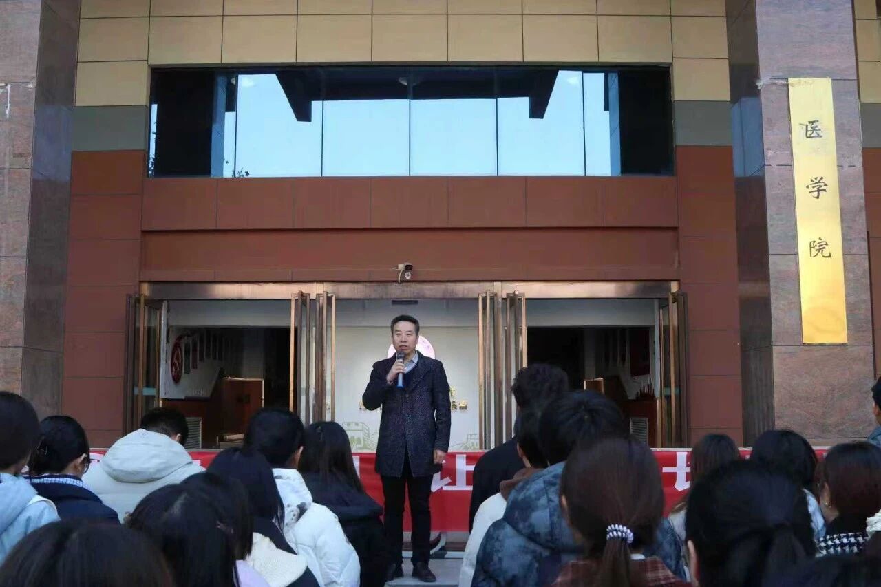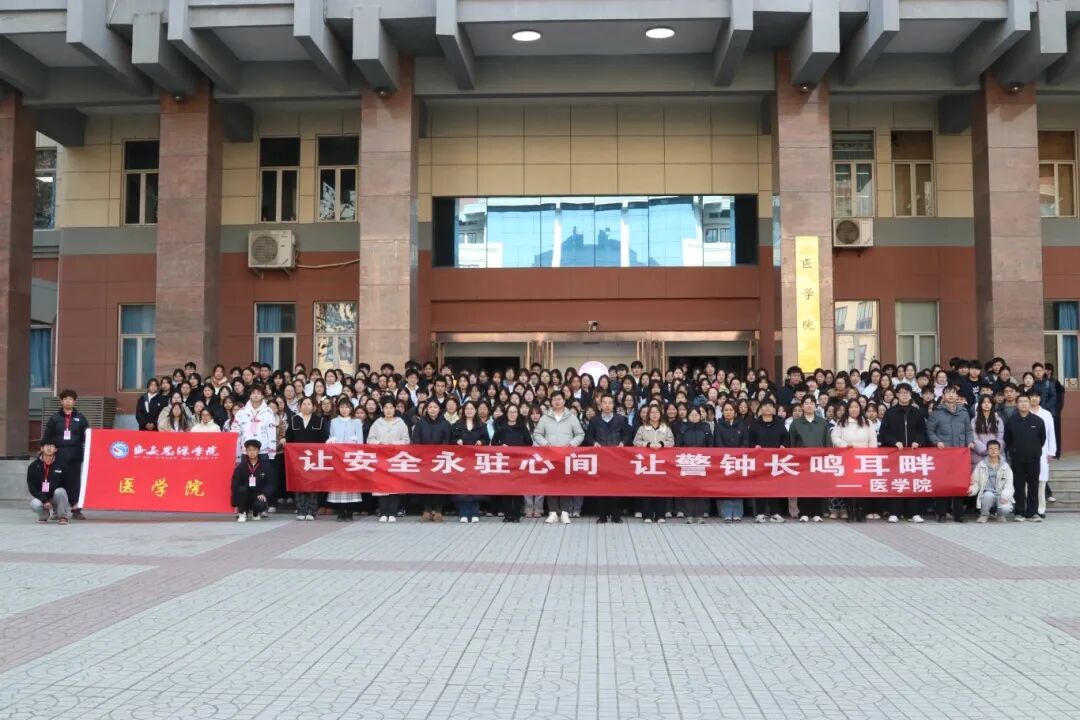 活动伊始,医学院党总支书记、学管副院长马晓斌发表重要讲话。他强调,安全是学校一切工作的基础和前提,关乎每位师生的切身利益与家庭幸福。他结合当前校园安全形势与典型案例,从消防安全、实验室安全、网络安全、人身财产安全、心理健康及交通安全等多个方面,深刻阐述了树立牢固安全意识、掌握必要安全技能、遵守各项安全规章制度的重要性。马晓斌院长要求全体师生务必时刻绷紧安全弦,将"安全第一"的理念内化于心、外化于行,共同担当起维护校园安全的责任。