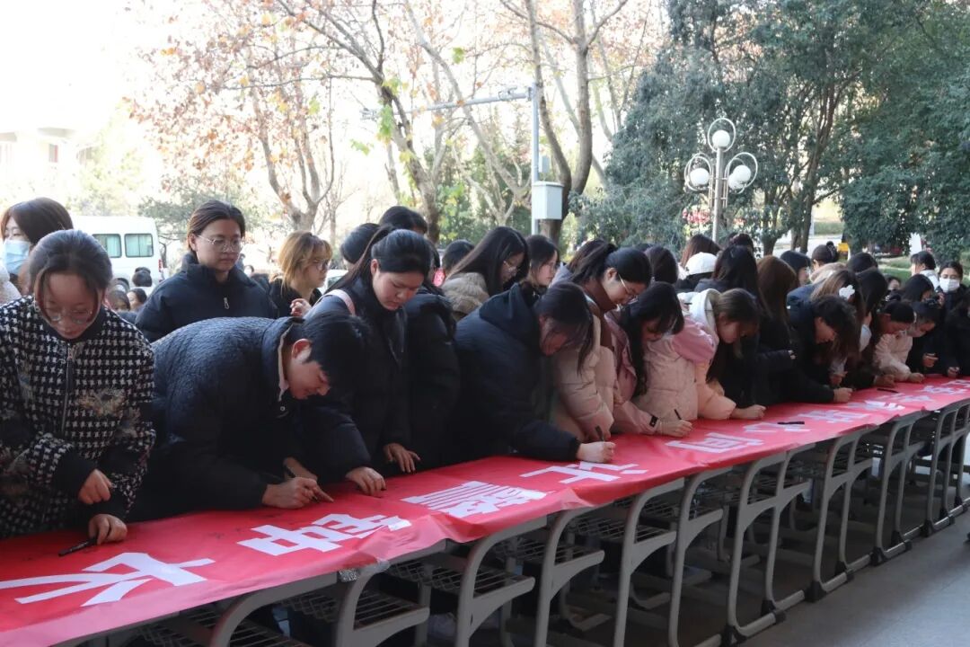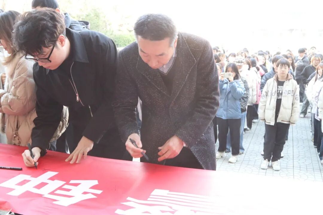 在马晓斌院长的带领下,师生们有序来到印有"让安全永驻心间,让警钟长鸣耳畔"醒目字样的红色横幅前,郑重签下自己的名字。一笔一划,不仅是简单的署名,更是一份沉甸甸的承诺,象征着师生携手共建安全校园的共同意愿与庄严约定。