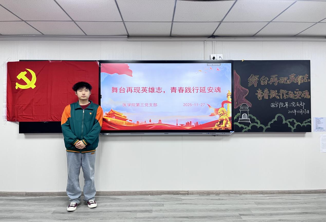 承延安薪火,铸青春信仰。为进一步传承红色基因,厚植爱国情怀,以延安研学作为精神纽带,将实地探访延安革命纪念馆等红色基地、感悟革命先辈初心所汲取的延安精神,与话剧表演深度融合,让延安精神从研学印记中鲜活起来,医学院第三党支部于2025年11月27日在中心楼515教室组织开展“延安精神铸信仰,红色研学蕴担当”红色话剧演绎活动。