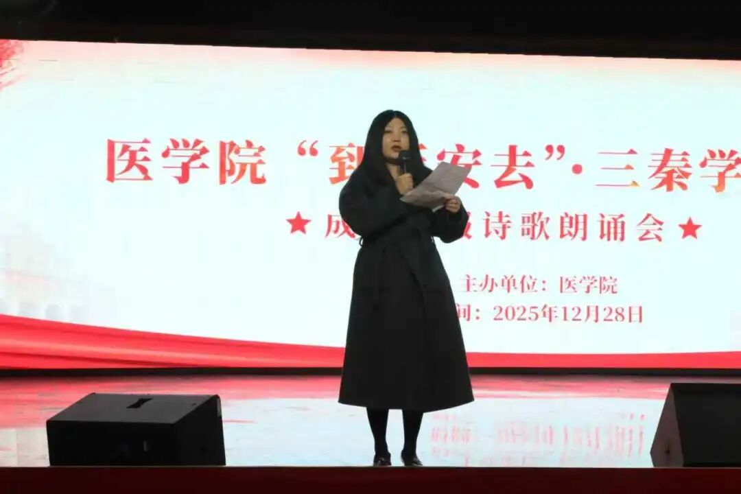 学生处马睿老师作为评委代表对同学们的表现进行了亲切而深刻的点评。她说道:“今晚,我不仅听到了诗歌的韵律,更听到了未来医者心灵的跳动。同学们巧妙地将听诊器、誓言等医学元素融入红色诗歌,让延安精神在专业的土壤中生根发芽,这种创新的表达展现了你们对历史的尊重、对职业的敬畏和对时代的思考。希望这份从圣地汲取的力量,能始终伴随你们的求学之路。”