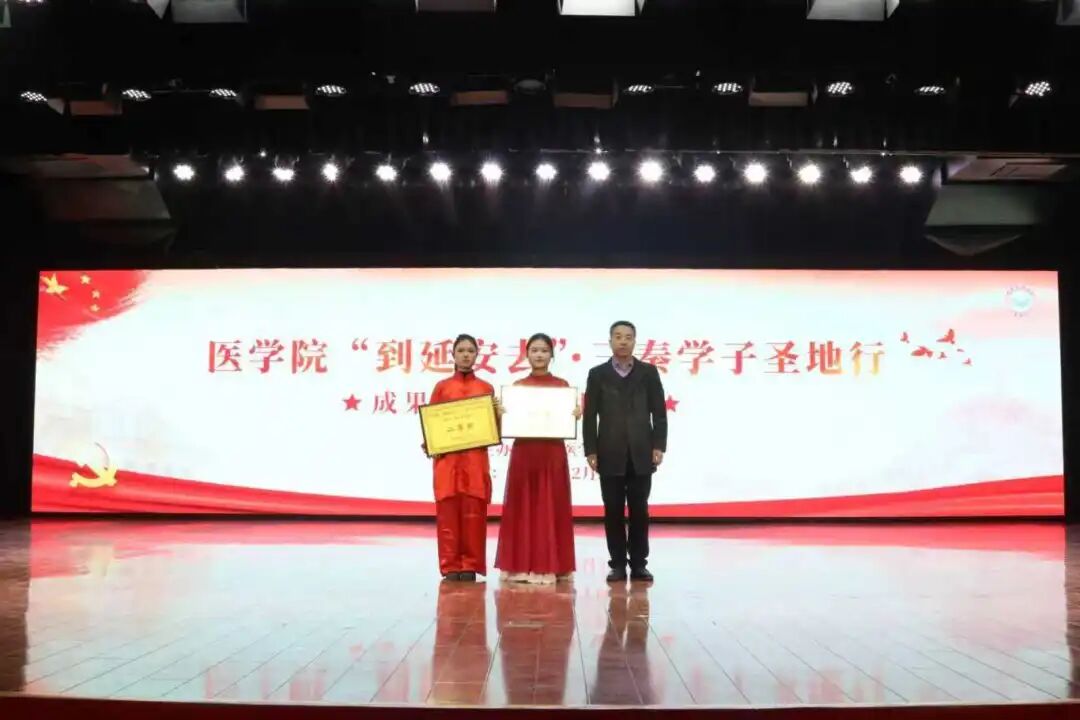 经过精彩的演绎与角逐,最终由25级护理学(专升本)1-4班带来的《八路军进行曲》荣获一等奖,由24级康复治疗学1-2班带来的《延安的雨》、25级护理学(专升本)5-8班带来的《时空之信:延河畔的白衣誓言》荣获二等奖,由25级康复治疗学(本)1-3班带来的《这束光》、24级口腔医学技术1-4班带来的《回延安》、24级医学检验技术1-2班、25级医学检验技术1-2班带来的《延安,我把你追寻》荣获三等奖,其余作品获得优秀奖。每一个奖项的背后,都是同学们对红色精神的深刻理解与对医学使命的郑重承诺。