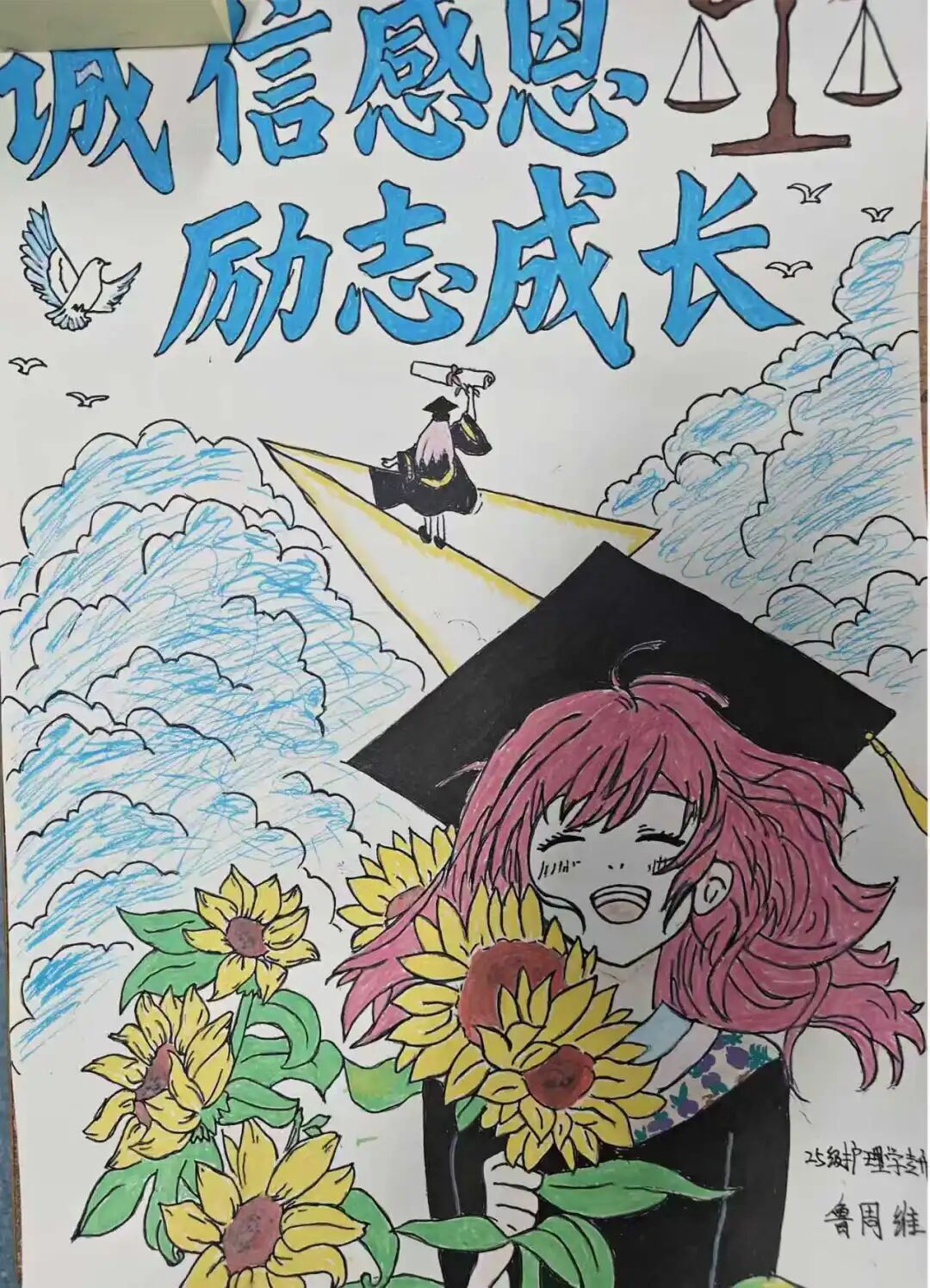 这些海报让“契约精神”突破时空界限,触达更多心灵。它们如同一组组视觉信标,携带着关于责任、感恩与成长的密码,悄然嵌入未来医学人才的认知图谱。或许在某个重要时刻——当面对专业抉择或利益考验时——这些曾被精心描绘的诚信意象将再度浮现,成为指引方向的内心明灯。