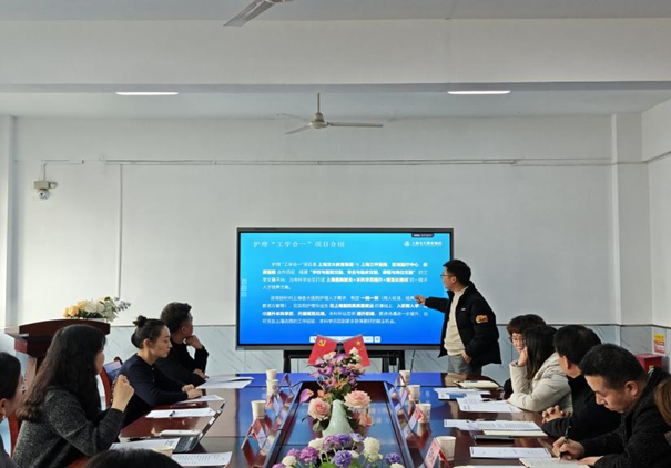 公司业务经理程波重点推介了上海交大教育集团护理“工学合一”项目,该项目通过与上海优质医疗机构合作,构建“学校与医院交融、专业与临床交融、课程与岗位交融”的工学交融平台,为专科毕业生提供集就业、学历提升和规范化培训于一体的培养方案。