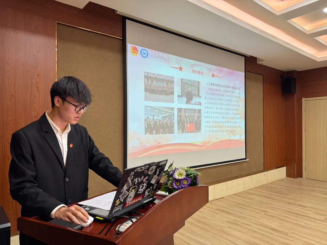 开场过后,人工智能学院团总支学生副书记陈浩然率先分享,详细介绍了该院团总支具体情况、各部门职能划分、工作流程等,从思想引领、组织建设、校园文化活动开展三个方面分享了务实有效的工作方法。