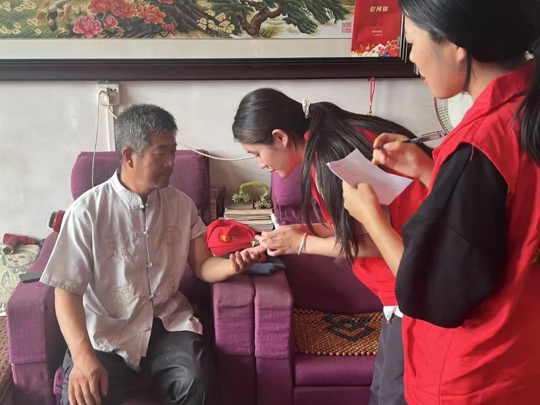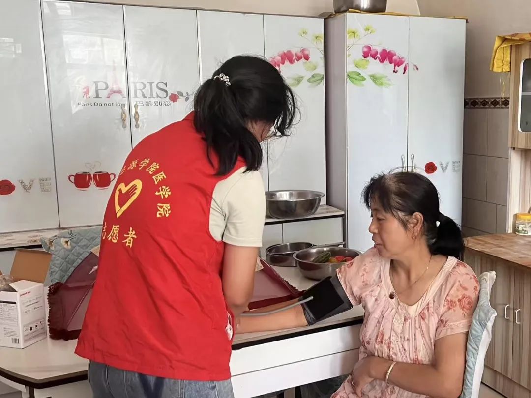 “冯大爷,我们来给您测测血压。”在冯大爷家中,成员们熟练地为老人测量血压、血糖,仔细询问他的身体状况和用药情况。得知老人有高血压病史但有时会忘记吃药,成员们便在药盒上用大字标注服药时间和剂量,并再三叮嘱按时用药的重要性。走访过程中,遇到有村民反映关节疼痛,成员们便详细记录症状,结合专业知识给出护理建议;看到有家庭存放过期药品,便讲解药品储存知识和过期药品的危害,提醒及时清理。每到一户,成员们都耐心细致,用真诚的态度赢得了村民的信任。