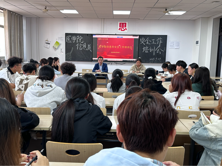 此次培训会以“案例警示+任务拆解”的形式,为医学院信息员队伍明晰了安全工作的核心方向,有效推动安全责任从“知晓”向“落地”转化。学院将持续以信息员队伍为重要抓手,进一步织密校园安全“预警网”与“防护网”,将“管理育人”理念融入安全工作各环节,切实护航全体师生生命财产安全,为校园高质量、稳定发展筑牢坚实根基。