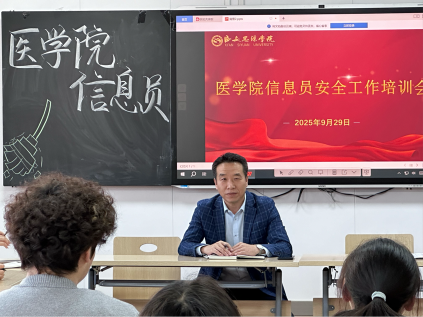 为全面强化校园安全管理体系,切实提升分院信息员队伍在安全工作中的履职能力与责任意识,2025年9月29日,医学院于中心楼725召开信息员安全工作培训会。会议围绕校园安全风险精准识别防范、学生安全、防骗反诈等关键领域。会议由党总支书记、学管副院长马晓斌主持,全体信息员参会。
