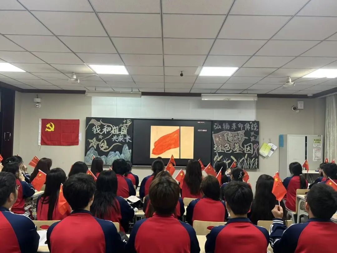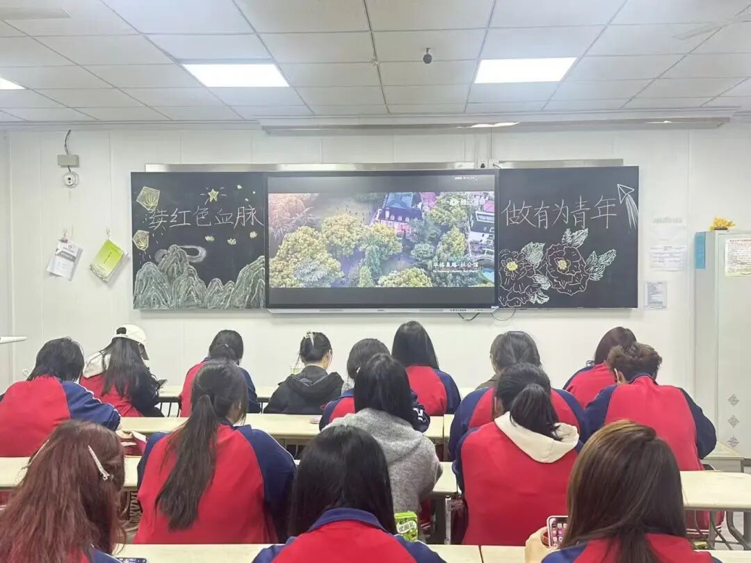 活动前期,各班级在党总支统一部署下,精心布置教室环境。黑板被设计成主题鲜明、图文并茂的“红色文化墙”:有的以“铭记历史,致敬英烈”为主题,绘出长城、红旗、军帽、和平鸽等元素,营造出沉浸式学习体验,让红色文化“润物无声”地浸润学生心田。