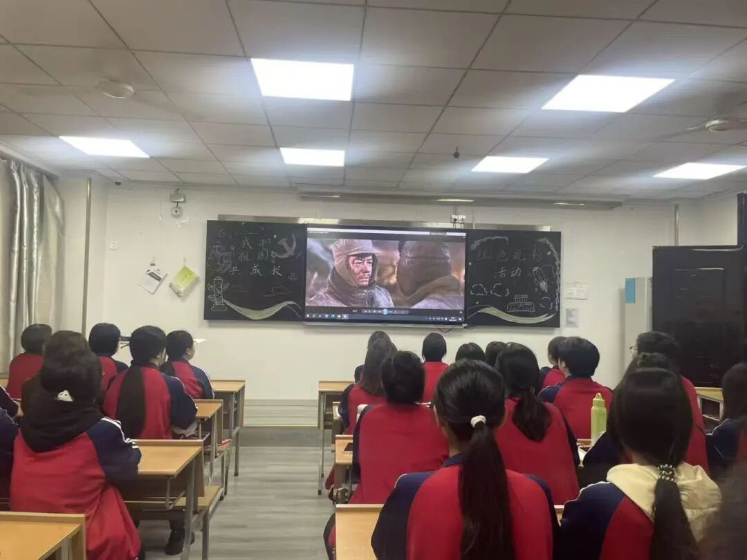 观影过程中,学生们全神贯注,《血战湘江》中红军将士视死如归的壮烈场景,《长津湖》系列中志愿军在极寒环境中坚守阵地的钢铁意志,《南京!南京!》中民族苦难的深刻警示,《我和我的祖国》中平凡人与国家命运紧密相连的动人瞬间……一幕幕历史画卷徐徐展开,让同学们仿佛穿越时空,置身于那个风雨如晦却又热血沸腾的年代。