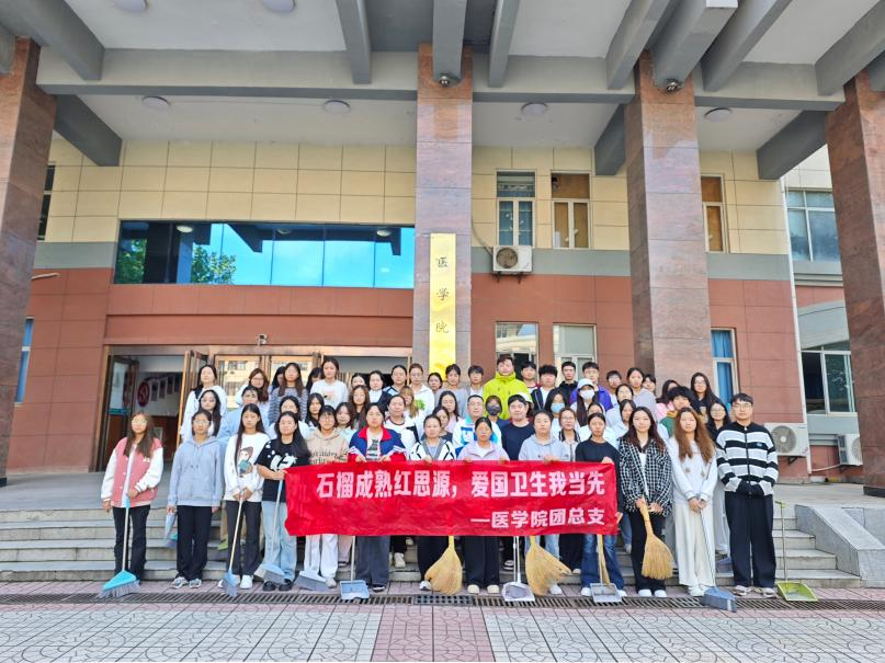 为积极响应新时代爱国卫生运动号召,进一步弘扬劳动光荣、奉献为美的校园风尚,营造整洁、卫生、安全的校园环境,培养大学生的劳动品德、劳动意识、劳动能力和爱卫意识,医学院于2025年10月15日组织开展了以“石榴成熟红思源,爱国卫生我当先”为主题的爱国卫生运动。此次活动旨在将爱国主义教育、劳动教育与校园环境建设深度融合,引导医学生在实践中增强集体意识、责任意识和公共卫生意识,营造更加整洁、文明、健康的育人环境。