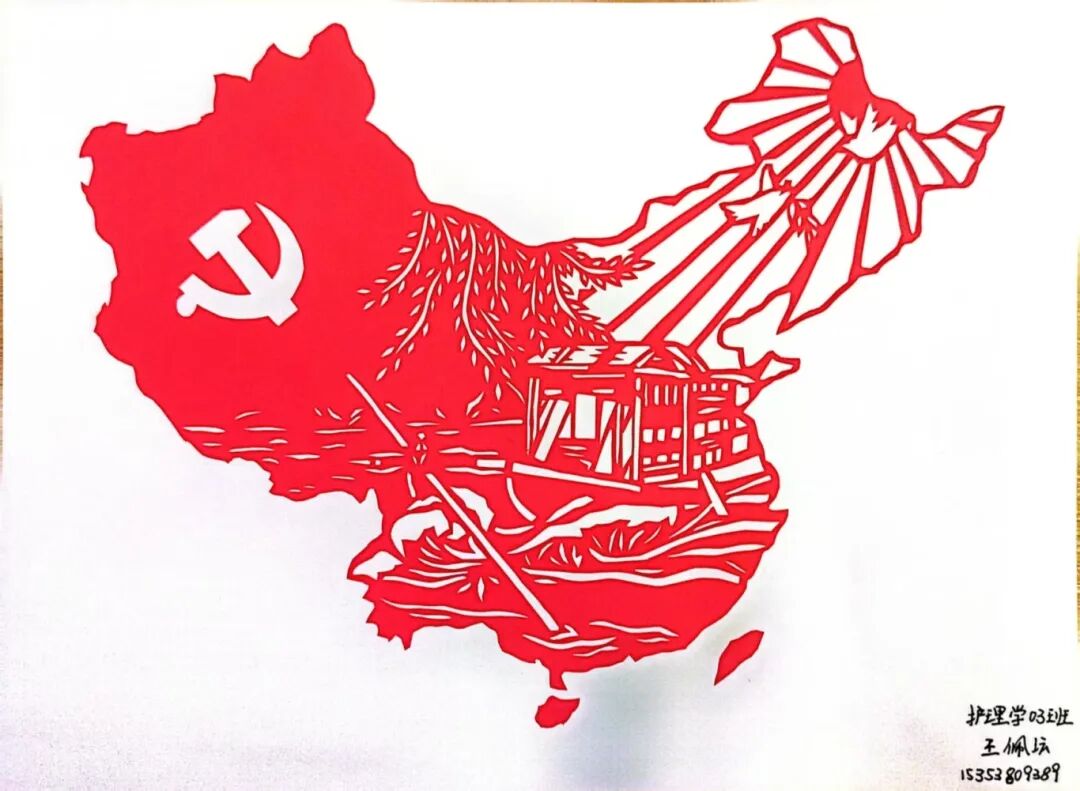 众多饱含家国情怀的作品尤为动人。剪纸作品将天安门、国旗、军人形象与白鸽、花卉等元素融合,以热烈的红色剪纸语言抒发浓厚爱国情;衍纸作品以卷纸工艺拼贴出中国地图轮廓,缤纷色彩彰显祖国大地的多元活力;还有剪纸把中国地图与红船、党徽巧妙结合,诉说对革命精神的传承;亦有作品将醒狮造型与“中国强”艺术字体及英文创意融合,传统技艺与现代表达碰撞,歌颂祖国繁荣。
