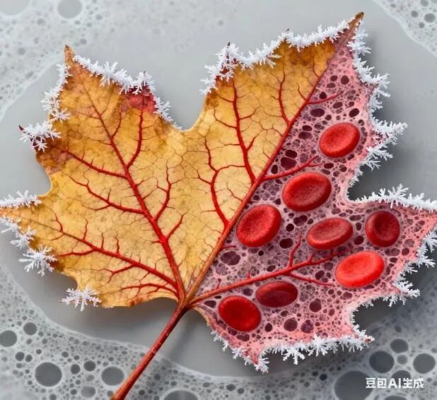 同学们以AI为笔,勾勒出各自心中的秋日哲思。有人将自然之秋与人体循环相映成趣:“金黄的银杏叶沿着动脉的轨迹铺展,如同红细胞在生命的脉络中奔流。”——原来我们身体里也藏着一个秋天,静默运转,生生不息。有人借落叶低语,诠释“落红不是无情物,化作春泥更护花”的深沉情意,仿佛自然在每一片叶落中写下循环与奉献的注脚。也有人将秋日喻为一首“色彩与收获的交响诗”,以AI为指挥棒,调和出季节的丰饶与内心的共鸣。这些创作不仅融合了医学视角与人文感悟,更在技术辅助下,展开了一场关于生命、时间与自然的跨学科对话。