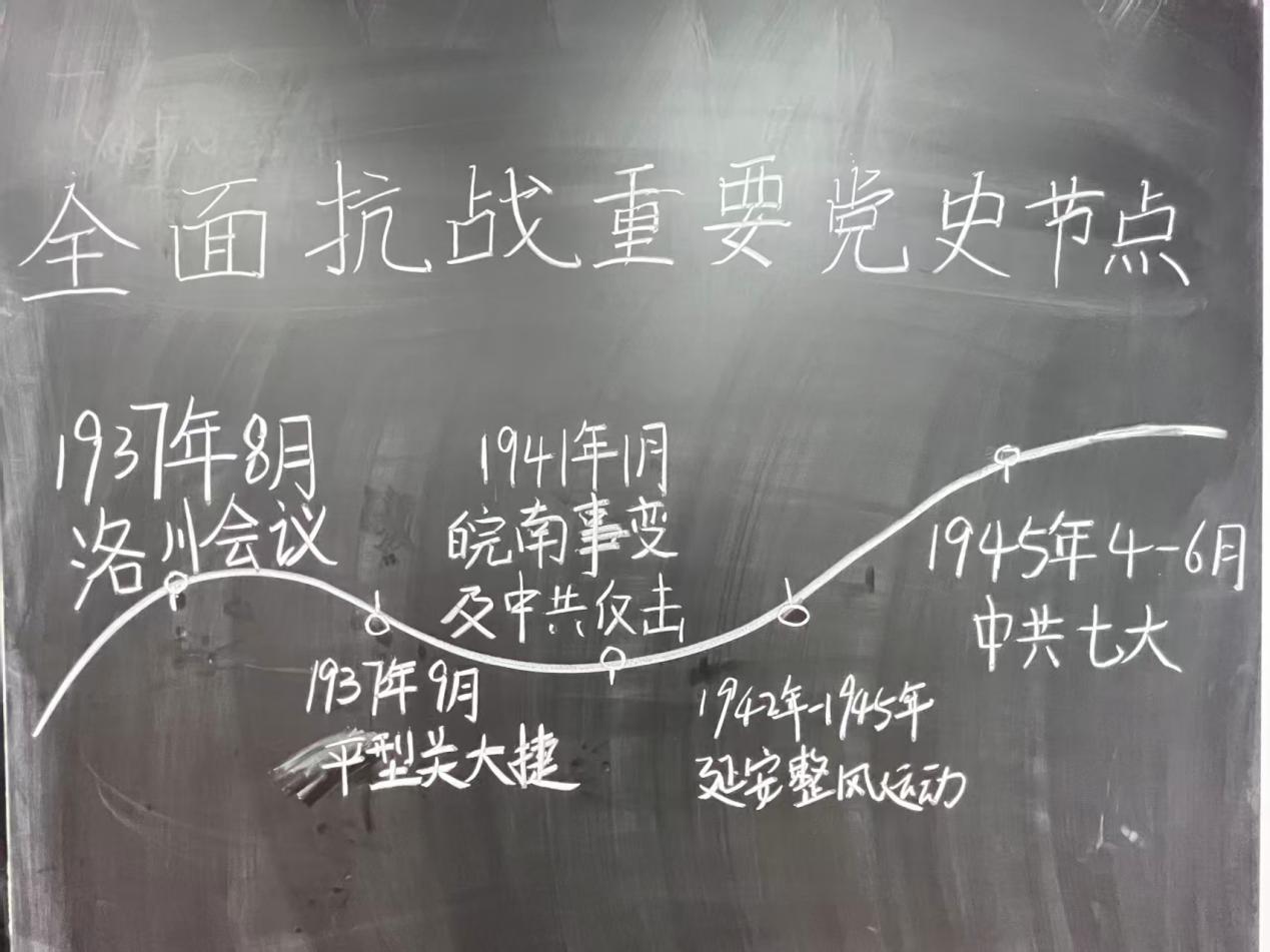 活动第一环节为“历史坐标·事件定位”。各小组依次抽取装有抗战时期历史事件的盲盒,随后在主持人的引导下,派代表在黑板上对应的时间轴位置书写相关党史事件。现场气氛热烈,支部成员积极思考、密切配合,不仅巩固了党史知识,也在协作中增进了彼此的了解与信任。大家纷纷表示,这种“动手+动脑”的学习方式生动有趣,让党史知识更加入脑入心。