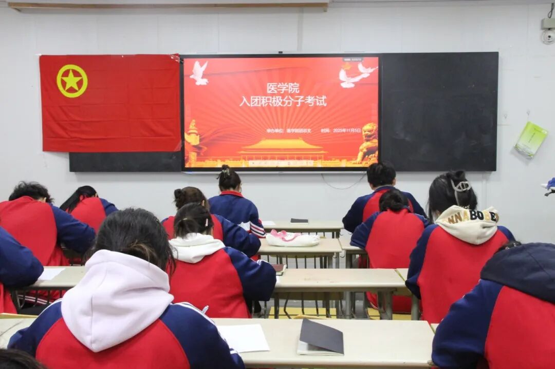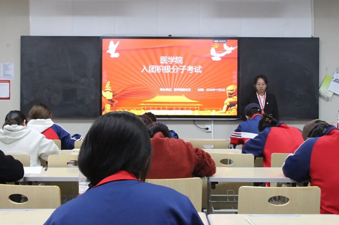 为深入贯彻落实新时代共青团组织建设要求,切实加强医学院团员队伍高质量发展,严格规范团员发展程序,把好入团“第一关”,医学院团总支于2025年11月5日,在中心楼519、521、433及640教室组织开展了2025年第二批入团积极分子培训课程结业考试。全体入团积极分子以饱满的热情和严谨的态度参加了本次考核。