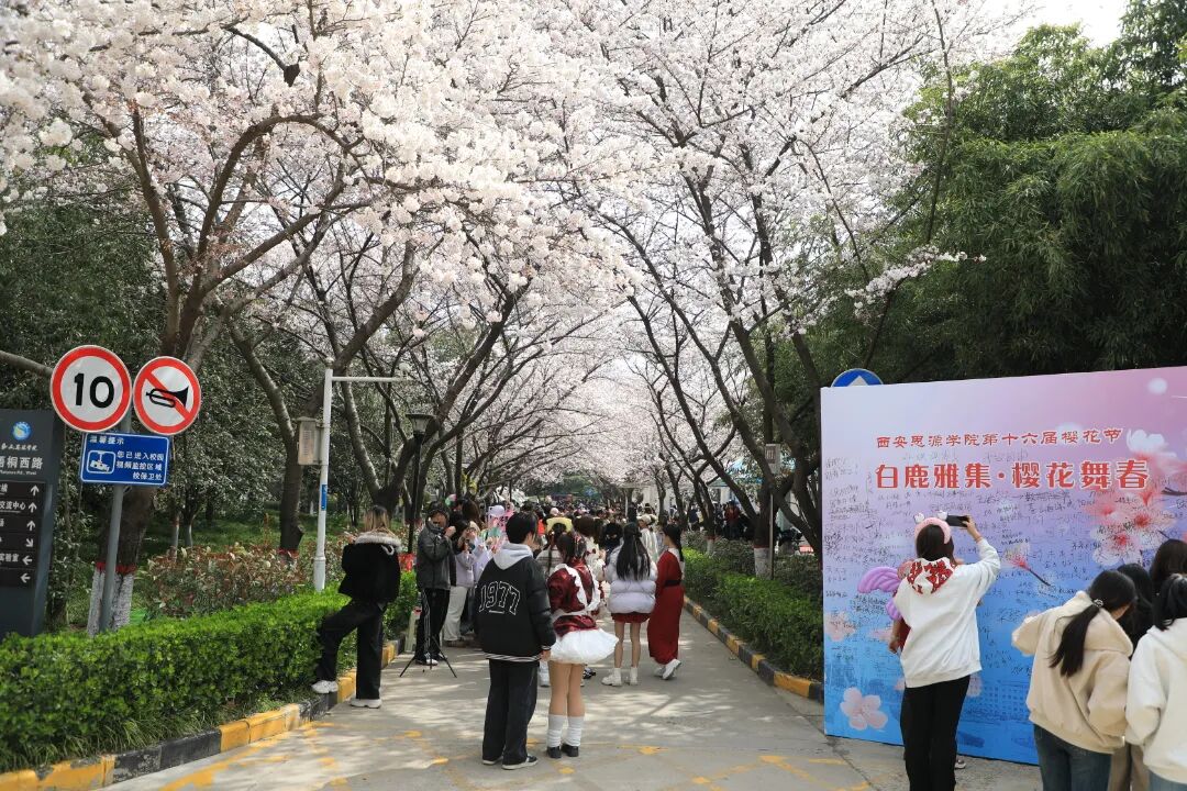 漫步樱花大道,目之所及皆是诗意。阳光穿过花影,洒下斑驳碎金,花瓣随微风轻舞,铺就一条浪漫的花径。同学们或驻足凝望,沉醉在这春日盛景;或结伴穿梭,用镜头捕捉花瓣飘落的瞬间,搞怪的姿势、开怀的笑颜,在粉樱的映衬下,定格成青春最美好的模样。笑声绕着花枝荡漾,惊飞了枝头雀鸟,也摇落了一场梦幻的花雨,将校园的春日氛围感拉满,也让医学生的青春,在烂漫中多了几分温柔底色。