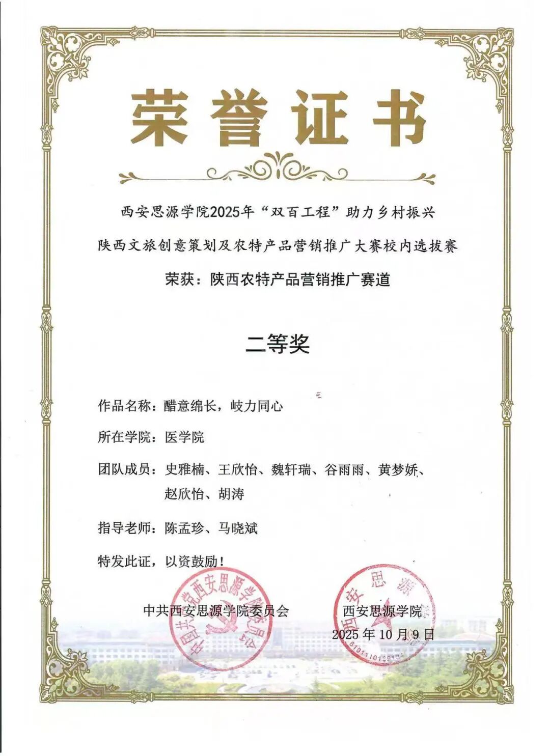 时光飞逝,两年的大学时光在学习与实践的交织中,让我对成长有了沉甸甸的体悟。90.6分的学年平均分、专业第五的排名,是我在护理课堂深耕理论、在实训室内反复打磨穿刺、护理评估等技能的见证。那些在图书馆里啃读教材的夜晚,那些在实训室纠正操作细节的瞬间,都化作了成绩单上的亮眼数字;国家奖学金的荣誉,不仅是对我努力的肯定,更让我懂得这份成绩背后承载的是精益求精的专业追求,是对未来护理工作的责任与担当。双百工程二等奖与优秀团队的斩获,让我真切体会到协作的力量。从任务分工到合力攻坚,从方案研讨到落地执行,每一步都凝聚着团队的汗水,也让我学会了在沟通中凝聚共识,在互助中共同进步。三项省级大学生创新创业大赛立项,则是我跳出课本、将护理专业知识与临床需求结合的创新尝试,在一次次推翻重来的研讨中,我读懂了“学以致用”的深刻内涵,也看到了护理专业创新发展的无限可能。“阅读之星”的称号,是我在专业典籍与人文书籍中沉淀自我的印记,也让我明白,护理不止是精准的技术操作,更是饱含温度的人文关怀。成长从来不是孤军奋战,而是在逐梦途中不断汲取力量、锤炼本领。未来,我会带着这份收获,在护理之路上稳步前行,用专业与热忱守护生命之光。