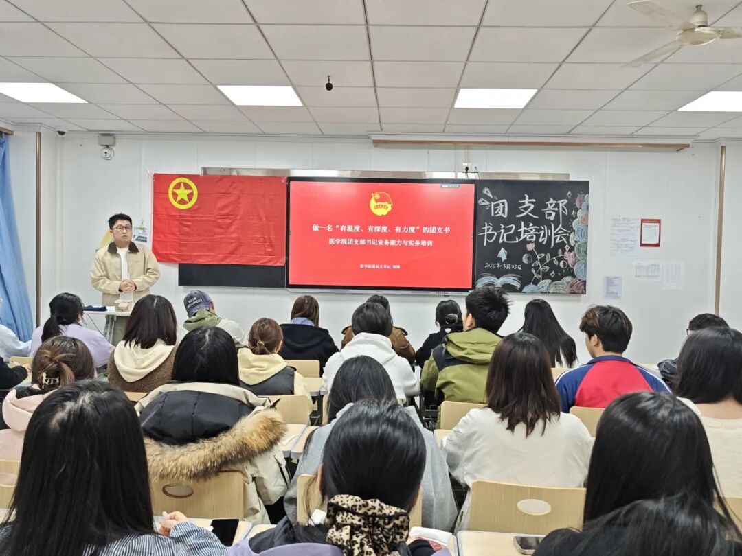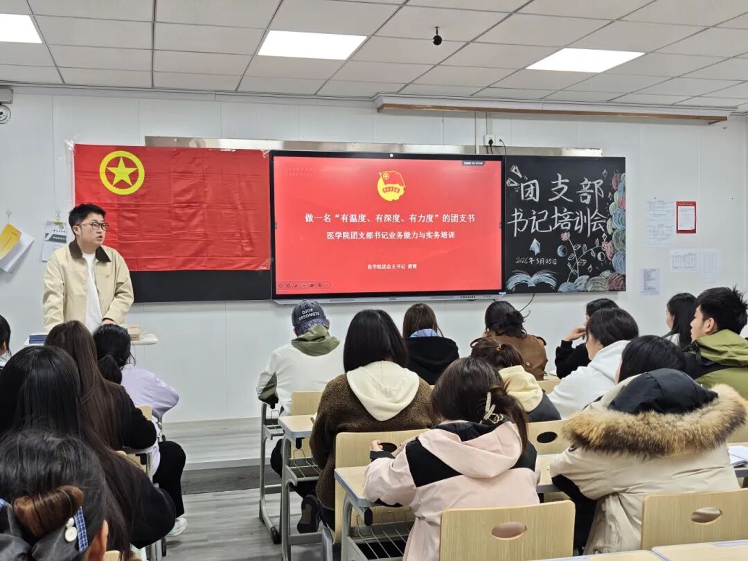 为进一步加强医学院基层团支部建设,提升各班团支部书记业务能力与工作水平,明确团支部工作规范与职责使命,2026年3月25日,医学院团总支于中心楼519教室开展团支部书记业务能力与实务培训会。此次培训由医学院团总支书记邢博主讲,全院各班团支部书记共同参会。