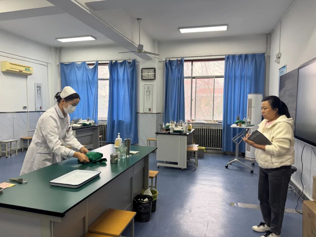选拔活动分为理论考试、现场面试和实操考核三个环节。同学们以热情饱满的态度积极准备。理论考试为线上答题,大家着装规范,沉着冷静,展示了护理学专业学生的基本素养。